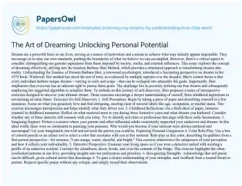 The Art of Dreaming: Unlocking Personal Potential. (2021, Jun 30). Retrieved from https://hub.papersowl.com/examples/achieving-my-dreams-by-understanding-how-they-work/