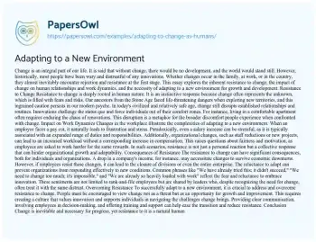 Adapting to a New Environment. (2021, May 10). Retrieved from https://hub.papersowl.com/examples/adapting-to-change-as-humans/