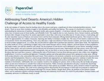 Addressing Food Deserts: America's Hidden Challenge of Access to Healthy Foods. (2024, May 21). Retrieved from https://hub.papersowl.com/examples/addressing-food-deserts-americas-hidden-challenge-of-access-to-healthy-foods/