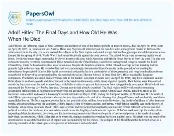 Adolf Hitler: The Final Days and How Old He Was When He Died. (2024, May 12). Retrieved from https://hub.papersowl.com/examples/adolf-hitler-the-final-days-and-how-old-he-was-when-he-died/