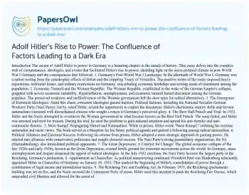 Adolf Hitler's Rise to Power: The Confluence of Factors Leading to a Dark Era. (2023, Dec 01). Retrieved from https://hub.papersowl.com/examples/adolf-hitlers-rise-to-power-the-confluence-of-factors-leading-to-a-dark-era/
