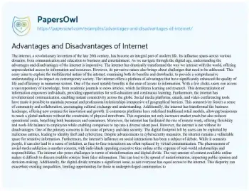 Advantages and Disadvantages of Internet. (2025, Mar 30). Retrieved from https://hub.papersowl.com/examples/advantages-and-disadvantages-of-internet/