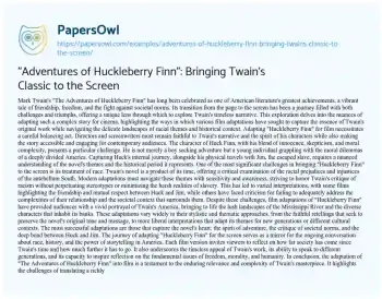 "Adventures of Huckleberry Finn": Bringing Twain's Classic to the Screen. (2024, Feb 20). Retrieved from https://hub.papersowl.com/examples/adventures-of-huckleberry-finn-bringing-twains-classic-to-the-screen/