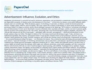Advertisement: Influence, Evolution, and Ethics. (2025, Apr 20). Retrieved from https://hub.papersowl.com/examples/advertisement-influence-evolution-and-ethics/