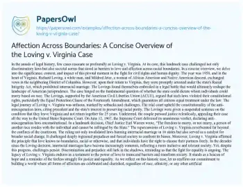 Affection Across Boundaries: A Concise Overview of the Loving v. Virginia Case. (2024, Jun 01). Retrieved from https://hub.papersowl.com/examples/affection-across-boundaries-a-concise-overview-of-the-loving-v-virginia-case/