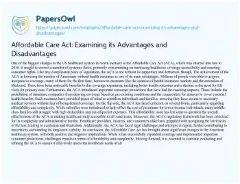 Affordable Care Act: Examining its Advantages and Disadvantages. (2024, Feb 27). Retrieved from https://hub.papersowl.com/examples/affordable-care-act-examining-its-advantages-and-disadvantages/