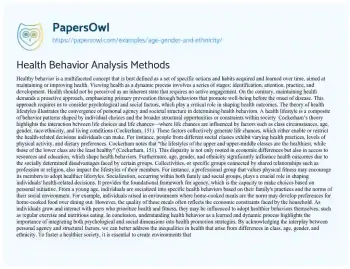 Health Behavior Analysis Methods. (2022, Jun 28). Retrieved from https://hub.papersowl.com/examples/age-gender-and-ethnicity/