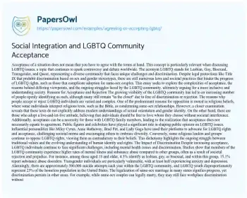 Social Integration and LGBTQ Community Acceptance. (2019, Jun 13). Retrieved from https://hub.papersowl.com/examples/agreeing-or-accepting-lgbtq/