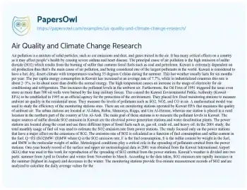 This essay delves into the intricate relationship between air quality and global climate change, emphasizing recent research findings, the pollutants most responsible for temperature variations, and the broader implications for human health and the environment. At PapersOwl, you’ll also come across free essay samples that pertain to Air Pollution topic.