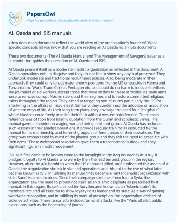 AL Qaeda and ISIS manuals. (2019, Jan 15). Retrieved from https://hub.papersowl.com/examples/al-qaeda-and-isis-manuals/