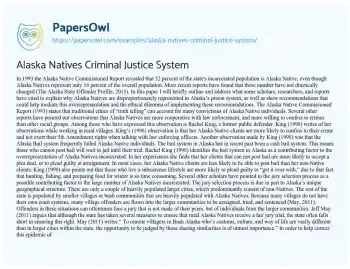 An in-depth look into the criminal justice system as it pertains to Alaska Natives, highlighting unique challenges, cultural considerations, and potential reforms to better serve this specific demographic. PapersOwl showcases more free essays that are examples of Crime topic.