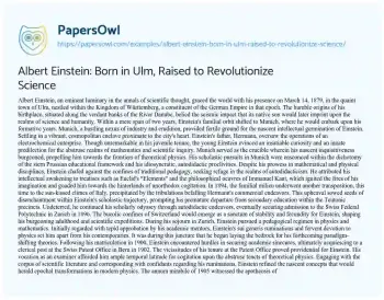 Albert Einstein: Born in Ulm, Raised to Revolutionize Science. (2024, May 21). Retrieved from https://hub.papersowl.com/examples/albert-einstein-born-in-ulm-raised-to-revolutionize-science/