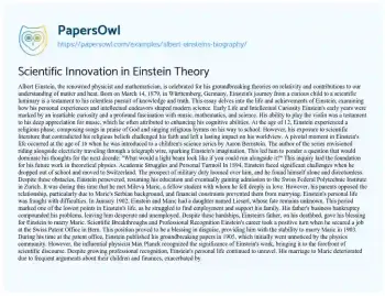Scientific Innovation in Einstein Theory. (2019, Apr 03). Retrieved from https://hub.papersowl.com/examples/albert-einsteins-biography/