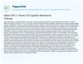 Albert Ellis 's Theory Of Cognitive Behavioral Therapy. (2024, Apr 22). Retrieved from https://hub.papersowl.com/examples/albert-ellis-s-theory-of-cognitive-behavioral-therapy/