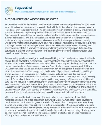 Alcohol Abuse and Alcoholism: Research. (2020, Dec 18). Retrieved from https://hub.papersowl.com/examples/alcohol-abuse-and-alcoholism-research/