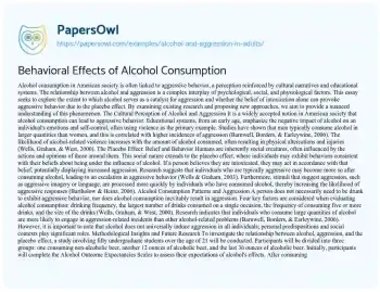 Behavioral Effects of Alcohol Consumption. (2019, Mar 18). Retrieved from https://hub.papersowl.com/examples/alcohol-and-aggression-in-adults/