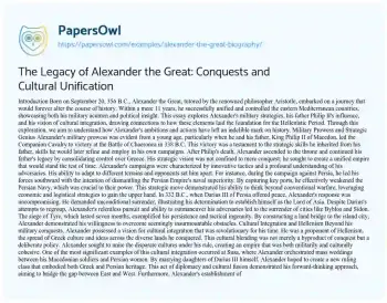 The Legacy of Alexander the Great: Conquests and Cultural Unification. (2020, Apr 11). Retrieved from https://hub.papersowl.com/examples/alexander-the-great-biography/