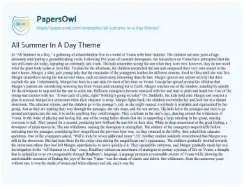 All Summer In A Day Theme