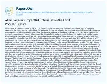 Allen Iverson's Impactful Role in Basketball and Popular Culture. (2024, May 21). Retrieved from https://hub.papersowl.com/examples/allen-iversons-impactful-role-in-basketball-and-popular-culture/