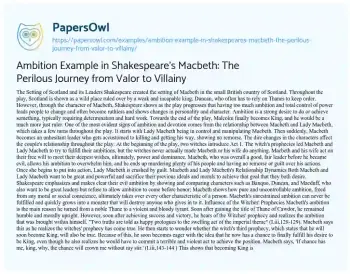 Ambition Example in Shakespeare’s Macbeth: The Perilous Journey from Valor to Villainy