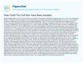 This essay will explore the factors contributing to the inevitability of the Civil War while considering how alternative actions might have postponed or lessened its impact.