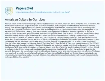 American Culture In Our Lives. (2024, Apr 22). Retrieved from https://hub.papersowl.com/examples/american-culture-in-our-lives/