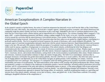 American Exceptionalism: A Complex Narrative in the Global Epoch. (2024, Mar 12). Retrieved from https://hub.papersowl.com/examples/american-exceptionalism-a-complex-narrative-in-the-global-epoch/