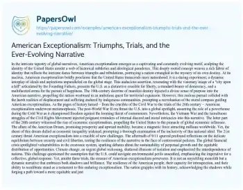American Exceptionalism: Triumphs, Trials, and the Ever-Evolving Narrative. (2024, Feb 20). Retrieved from https://hub.papersowl.com/examples/american-exceptionalism-triumphs-trials-and-the-ever-evolving-narrative/