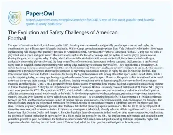 The Evolution and Safety Challenges of American Football. (2022, Nov 09). Retrieved from https://hub.papersowl.com/examples/american-football-is-one-of-the-most-popular-and-favorite-sports-in-many-countries/