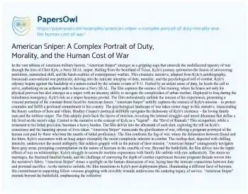American Sniper: A Complex Portrait of Duty, Morality, and the Human Cost of War. (2024, Feb 20). Retrieved from https://hub.papersowl.com/examples/american-sniper-a-complex-portrait-of-duty-morality-and-the-human-cost-of-war/