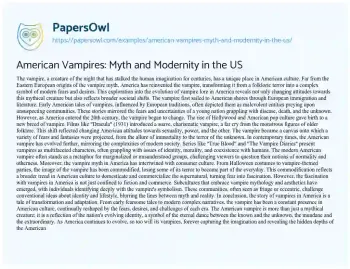 This essay delves into the evolution of vampire mythology in American culture, tracing its journey from European folklore to a modern symbol reflecting societal changes. Initially, vampires in America were seen as malevolent entities, embodying the nation’s fears and uncertainties. However, with the advent of Hollywood and American pop culture, a transformation occurred, presenting vampires as charismatic, complex figures, indicative of changing attitudes towards sexuality, power, and otherness.