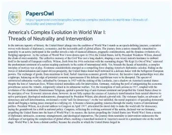 America's Complex Evolution in World War I: Threads of Neutrality and Intervention. (2024, Mar 01). Retrieved from https://hub.papersowl.com/examples/americas-complex-evolution-in-world-war-i-threads-of-neutrality-and-intervention/