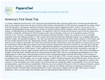 America's First Road Trip. (2025, Dec 06). Retrieved from https://hub.papersowl.com/examples/americas-first-road-trip/