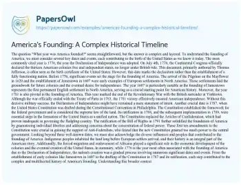 America's Founding: A Complex Historical Timeline. (2024, Jul 16). Retrieved from https://hub.papersowl.com/examples/americas-founding-a-complex-historical-timeline/