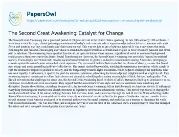 The Second Great Awakening: Catalyst for Change. (2024, Jan 26). Retrieved from https://hub.papersowl.com/examples/americas-spiritual-resurgence-the-second-great-awakening/