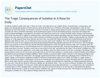 The Tragic Consequences of Isolation in A Rose for Emily. (2020, Mar 30). Retrieved from https://hub.papersowl.com/examples/an-analysis-of-emily-from-a-rose-for-emily/