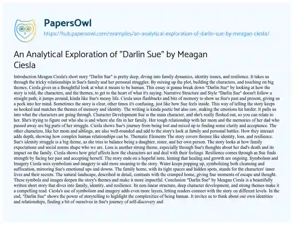 An Analytical Exploration of "Darlin Sue" by Meagan Ciesla. (2024, Sep 17). Retrieved from https://hub.papersowl.com/examples/an-analytical-exploration-of-darlin-sue-by-meagan-ciesla/