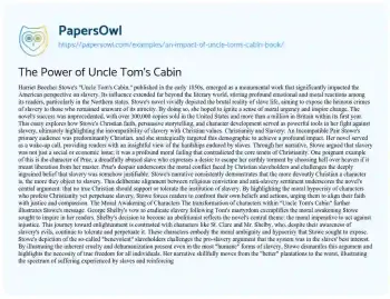 The Power of Uncle Tom's Cabin. (2019, Feb 08). Retrieved from https://hub.papersowl.com/examples/an-impact-of-uncle-toms-cabin-book/