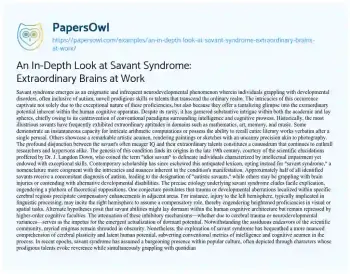 An In-Depth Look at Savant Syndrome: Extraordinary Brains at Work. (2024, May 12). Retrieved from https://hub.papersowl.com/examples/an-in-depth-look-at-savant-syndrome-extraordinary-brains-at-work/