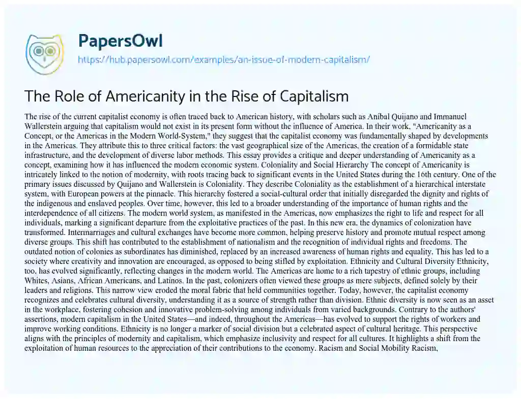 The Role of Americanity in the Rise of Capitalism. (2020, Mar 11). Retrieved from https://hub.papersowl.com/examples/an-issue-of-modern-capitalism/