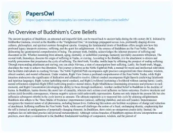 An Overview of Buddhism's Core Beliefs. (2024, May 12). Retrieved from https://hub.papersowl.com/examples/an-overview-of-buddhisms-core-beliefs/