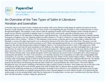 An Overview of the Two Types of Satire in Literature: Horatian and Juvenalian. (2022, Nov 29). Retrieved from https://hub.papersowl.com/examples/an-overview-of-the-two-types-of-satire-in-literature-horatian-and-juvenalian/