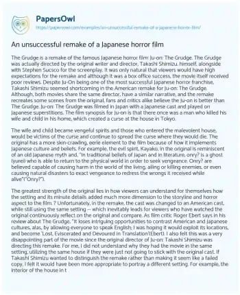 An unsuccessful remake of a Japanese horror film. (2022, Nov 14). Retrieved from https://hub.papersowl.com/examples/an-unsuccessful-remake-of-a-japanese-horror-film/
