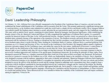 Davis' Leadership Philosophy. (2024, Sep 17). Retrieved from https://hub.papersowl.com/examples/analysis-of-jefferson-davis-inaugural-address/