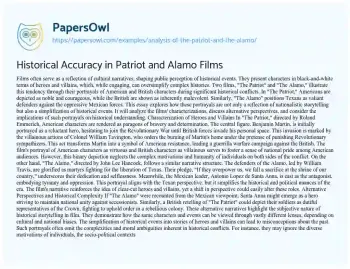 Historical Accuracy in Patriot and Alamo Films. (2020, Apr 19). Retrieved from https://hub.papersowl.com/examples/analysis-of-the-patriot-and-the-alamo/