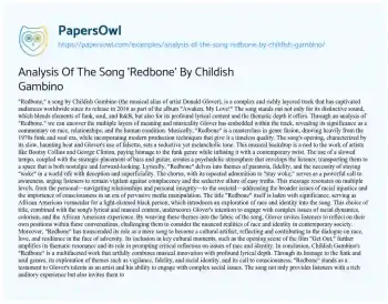 Analysis Of The Song 'Redbone' By Childish Gambino. (2024, Apr 14). Retrieved from https://hub.papersowl.com/examples/analysis-of-the-song-redbone-by-childish-gambino/