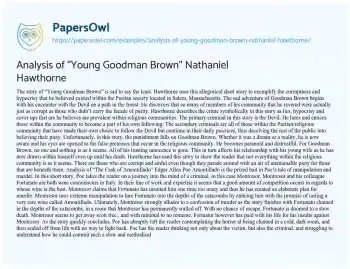 This essay will analyze Nathaniel Hawthorne’s short story “Young Goodman Brown,” discussing its exploration of Puritanism, moral ambiguity, and the complexity of human nature. PapersOwl showcases more free essays that are examples of Analysis.