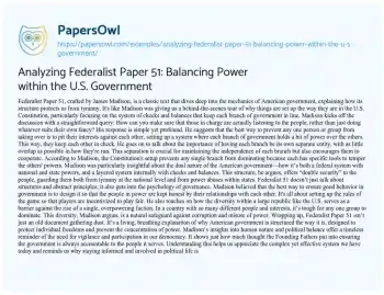 Analyzing Federalist Paper 51: Balancing Power within the U.S. Government. (2024, May 12). Retrieved from https://hub.papersowl.com/examples/analyzing-federalist-paper-51-balancing-power-within-the-u-s-government/