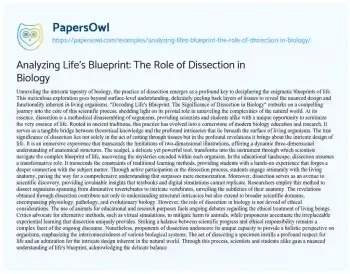 Analyzing Life's Blueprint: The Role of Dissection in Biology. (2024, Mar 12). Retrieved from https://hub.papersowl.com/examples/analyzing-lifes-blueprint-the-role-of-dissection-in-biology/