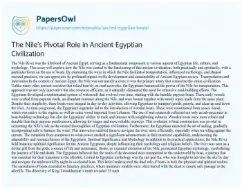 The Nile's Pivotal Role in Ancient Egyptian Civilization. (2019, Apr 18). Retrieved from https://hub.papersowl.com/examples/ancient-egyptian-boats/